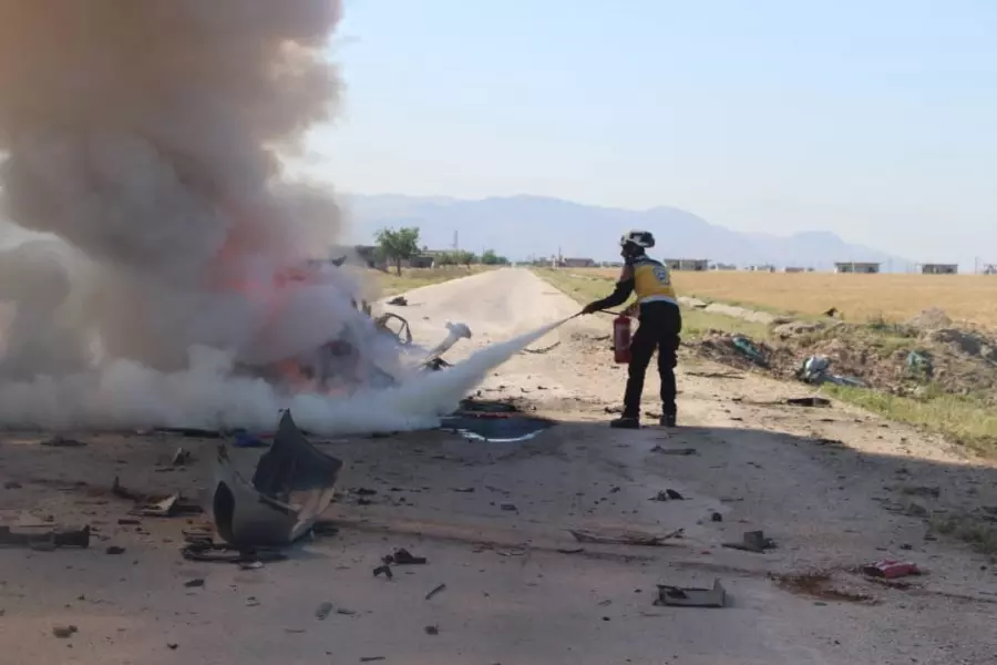 وأكد الدفاع المدني أن حريقاً ضخم في اندلع في السيارتين على خلفية انفجار اللغم, حيث تمكنت فرق الإطفاء من السيطرة على الحريق وإخماده بشكل كامل وانتشال الشهداء وإسعاف المصابين.