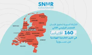 أكدت الشبكة السورية لحقوق الإنسان أنها شكّلت المصدر الحقوقي الثاني الأكثر اقتباسًا في تقرير وزارة الخارجية الهولندية الأخير حول سوريا، حيث ورد اسمها في 160 موضعًا من أصل 164 صفحة شملها التقرير، لتأتي بعد المفوضية السامية لشؤون اللاجئين التي تصدرت القائمة بـ174 اقتباسًا.