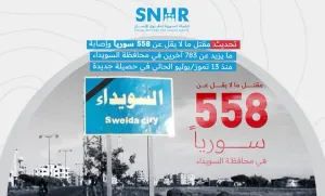 وكانت شهدت محافظة السويداء في الأيام الأخيرة اشتباكات عنيفة بين عشائر البدو والدروز، وقال التقرير إن القوات الحكومية تدخّلت لمحاولة "فض النزاع"، ثم انسحبت لاحقًا عقب اتفاق أولي بين الأطراف.