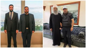 لكن ما لبثت تلك اللغة الإيجابية أن انقلبت، لتتحول إلى تهديدات صريحة باستخدام ملفات قانونية، وتحريض على المواجهة، وتبجيل علني لزعماء ميليشيات مسلحة، كما في منشوره الذي نشر فيه صورة تجمعه بالشيخ حكمت الهجري، زعيم ميليشيا مسلحة تقاتل الجيش السوري، واصفًا إياه بـ"قائد النصر".