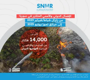 أدانت الشَّبكة السورية لحقوق الإنسان في بيان لها بعنوان “الإهمال الدولي والأممي المتكرر في سوريا: من زلزال شباط/فبراير 2023 إلى حرائق تموز/يوليو 2025”، الاستجابة الدولية المتقاعسة لكارثة الحرائق البيئية التي اجتاحت المناطق الساحلية السورية منذ 30 حزيران/يونيو 2025، والتي تُمثل واحدة من أعنف الكوارث البيئية في التاريخ السوري المعاصر.