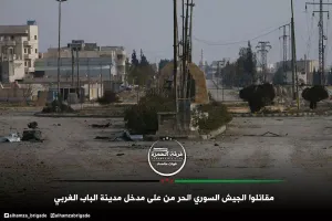 وتداول ناشطون عبر مواقع التواصل الاجتماعي صوراً للمدخل الغربي لمدينة الباب، حيث يظهر سيطرة الجيش الحر على المنطقة، وسط اشتباكات عنيفة مازالت مستمرة منذ مساء الأمس حتى الساعة على عدة محاور في المدينة بين فصائل الجيش الحر وعناصر تنظيم الدولة.