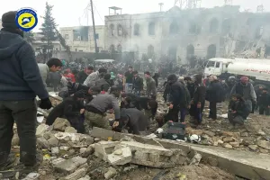 ارتفع عدد الشهداء الذين ارتقوا جراء قيام انتحاري بتفجير نفسه مع سيارة مفخخة كان يقودها بالقرب من مبنى المحكمة الشرعية والهلال الأحمر في مدينة اعزاز القريبة من الحدود التركية بريف حلب الشمالي.