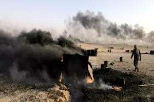 ارتكبت طائرات التحالف الدولي مجزرة بحق المدنيين في ريف ديرالزور، حيث تركز القصف على حراقات النفط وصهاريج الوقود.