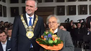 وسط جدل إعلامي ألماني واسع ونقد شديد وجهه إليه وإلى لجنة التحكيم كُتّاب ألمان ومعارضون سوريون استلم " أدونيس" جائزة ريمارك للسلام في مدينة أوسنابروك ، رغم مواقفه المعارضة للشعب السوري و المساندة للسفاح بحجة اعتمادها على الدين ، و اعترضت الإيطالية جوزيبينا ماريا نيكوليني (ذات الإسهامات تجاه اللاجئين) رئيسة بلدية جزيرة لامبيدوزا رفضت استلام جائزتها إلى جانب أدونيس.، في حين انتقد الكاتب الألماني الإيراني نَفيد كرماني تسليم الجائزة لأدونيس نظراً لـ "تجاهل أدونيس الوحشية التي يتعامل بها نظام دمشق مع شعبه".