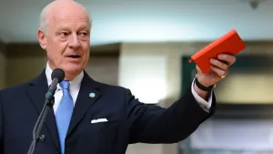 قال متحدث باسم الأمم المتحدة إن ستافان دي ميستورا مبعوث الأمم المتحدة إلى سوريا قد بحث مع وزير خارجية الأسد ، اليوم بعد أن وصل دمشق على عجل ، وقف العمليات القتالية واستئناف المفاوضات في ٢٥ الشهر الجاري ، مشيراً إلى أنه تم التأكيد على الحاجة إلى وصول المساعدات الإنسانية "دون تعطيل" إلى المناطق المحاصرة من قبل جميع الأطراف.