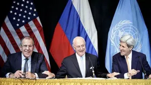 وقال وزير الخارجية الأميركي جون كيري ،خلال مؤتمر صحفي مشترك مع نظيره الروسي سيرغي لافروف والمبعوث الأممي ستيفان دي ميستورا، إن اتفاق وقف الأعمال العدائية لا يشمل تنظيم الدولة الإسلامية وجبهة النصرة،وأكد كيري أنه تم الاتفاق على تسريع توفير المساعدات الإنسانية وتوسيع نطاقها لتشمل كافة المدن والبلدات المحاصرة في سوريا، وكشف عن تشكيل فريق عمل برئاسة الأمم المتحدة سيعمل بداية من اليوم في جنيف على توزيع المساعدات الإنسانية، وسيقدم تقارير أسبوعية بشأن ذلك.