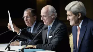 بدوره، أعرب كيري عن ثقته في إمكانية بدء محادثات جنيف التي كان من المفترض أن تبدأ الاثنين المقبل، إلا أن الأمم المتحدة أعلنت تأخيرها بضعة أيام بسبب خلافات حول تشكيلة وفد المعارضة، وقال إن حجم القتل الذي يحدث في سوريا ونقص الغذاء والدواء يدفعان إلى تسريع المفاوضات.