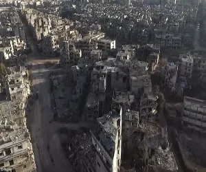كشفت لقطات جوية صادمة مدى الدمار الذي لحق بمدينة حمص أكبر محافظة سورية بعد حرب استمرت بها لأكثر من 3 سنوات بين الثوار و قوات الأسد.