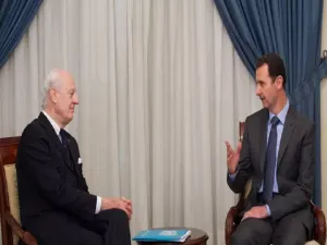وكان دي مستورا قد التقى بالأمس مع وزير خارجية الأسد وليد المعلم و قالت وكالة الإجرام "سانا" أن الطرفين بحثا في الأفكار الجديدة لخطة "تجميد القتال في حلب".