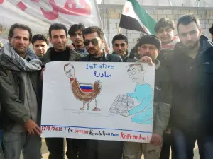 وأن راديو فريش والمكتب الإعلامي كانوا يحضرون لمظاهرة ضخة في كفرنبل جهزت لها لافتات وعبارات مناهضة للغرب ولما تقوم به بعض الصحف الغربية من نشر رسوم تسيىء للأسلام والني محمد صلى الله علية وسلم وأنهم قاموا بمظاهرتهم بالرغم من تعرض مراكزهم للمداهمة من قبل جبهة النصرة شارك فيها العديد من الناشطين والاهالي جابت شوارع كفرنبل .
