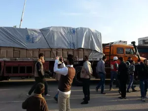 وأضافت "بعد مفاوضات مكثفة بين أطراف الصراع سلمت أول قافلة حصصاً غذائية لنحو 8500 أسرة إلى منطقة الوعر" وهي كمية من الغذاء تكفي حوالي 42500 فرد لمدة شهر
