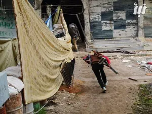 يحاول النظام أن يسترد توازنه على الارض من خلال اقحام العناصر الحيادية رغماً عنها في الصراع ، من خلال المداهمات والاعتقالات و اقتياد الشباب قسراً الى ما يسمى السخرة والقيام ببناء السواتر العسكرية بالإضافة الى استخدامهم كحواجز بشرية في اماكن الصراع المشتعلة .