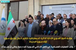 وأعلنت الإدارة عن مبادرة الحوار السوري لبناء سوريا الجديدة، وحددت 10 خطوات، ذكرت أنها "مصيرية" للشعب السوري، وهاجمت في البند الأول الدولة التركية وفصائل الثورة السورية ودعت في الثاني إلى "وقف العمليات العسكرية في كامل سوريا للبدء بحوار وطني".
