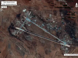 واستهدفت الضربة الجوية الأميركية مقاتلات سورية رابضة في المطار وحظائر طائرات ومناطق لتخزين الوقود والإمدادات اللوجستية ومخازن للذخيرة وأنظمة دفاع جوي وأجهزة رادار، وقالت واشنطن إنه لم تصب في الغارات أي طائرات عسكرية روسية، وإنها أخطرت القيادة الروسية قبل تنفيذ الغارات.