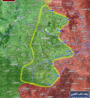 وأعلنت "إدارة العمليات العسكرية"، تحرير كامل ريف حلب الغربي، بعد معارك ضارية وعنيفة جداً مع قوات النظام والميليشيات الإيرانية، استمرت لأكثر من 36 ساعة متواصلة ضمن عملية "ردع العدوان".