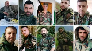 ومن بين القتلى ضباط وقادة، منهم المقدم “ربيع حكمت محمد”، والعميد الركن “هشام هايل الحكيم”، والنقيب “أحمد عبدالله سوقة”، والرائد “مجد درويش”، والملازم “عمران جنيدي”، والنقيب “علاء علي”، والمقدم “قاسم عمران”.