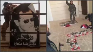 وفي تسجيل آخر يوثق مشاعر عودة أصحاب الأرض إلى مناطقهم، ظهر مقاتلون من عملية ردع العدوان يمتشقون أسلحتهم عند أحد الدوارات داخل عنجارة غربي حلب. أحدهم غلبه الشعور فخرًا، فسجد على ثرى بلدته ليشبع شوقه وحنينه إليها.
