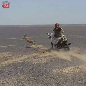 في صورة رصدها "السويداء 24"، يظهر صياد من سكان البادية وهو يطارد غزالاً على دراجة نارية. أوضح صاحب الصورة أن الصيد هواية بالنسبة له وليس محرماً، لكن يجب ألا يتم بطرق وحشية كما يحدث حالياً.