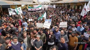 واعتقلت "قسد" 8 أشخاص في حملة أمنية استهدفت بلدة الصور بريف دير الزور الشمالي، وجاءت الاعتقالات بعد مشاركة الأشخاص في تظاهرة خرجت بتاريخ 25 آذار الجاري احتجاجًا على تردي الواقع المعيشي والخدمي.