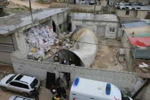وذكرت أن من بين الجرحى معلمة، في حين بثت مشاهد تظهر انهيار جدار مستودع للحبوب بسبب ضغط أكياس القمح والأعلاف على خيمة تعليمية للأطفال، داخل بناء روضةٍ خاصة في مدينة سرمدا بريف إدلب الشمالي.