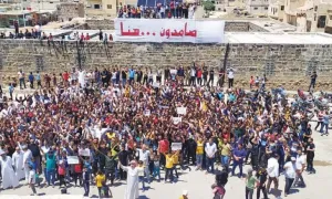 ورصد التقرير استمرار خروج احتجاجات مدنية سلمية للشهر الرابع على التوالي في محافظة السويداء جنوب سوريا والخاضعة لسيطرة النظام السوري، وكانت المظاهرات تجدد الإشارة إلى مسؤولية بشار الأسد عن تردي الأوضاع في البلاد، وتطالب بتغيير النظام السوري.