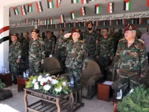 وأوضحت المجموعة أن الاحتفال حضره عدد من كبار ضباط الجيش، وألقى قائد الجيش اللواء "أكرم محمد السلطي" كلمة أكد فيها على تمسك الجيش بمواقفه الثابتة من فلسطين، وسورية والتزامه بالسير قدماً خلف راية "بشار الأسد"، وفق تعبيره.