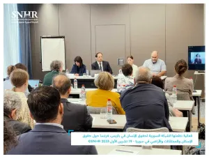 عقدت "الشبكة السورية لحقوق الإنسان" يوم الخميس 19/ تشرين الأول/ 2023، فعالية بهدف إطلاق تقريرها الموسع بعنوان "آليات توظيف النظام السوري القوانين التي وضعها للسيطرة على عشرات الآلاف من المنازل والأراضي والعقارات في محافظة حمص"، وذلك في باريس، فرنسا.