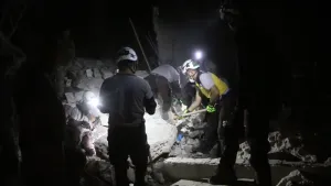 و قتلت امرأة وأنقذت فرق الدفاع زوجها من تحت أنقاض منزلهما، وهما والدا المتطوع في الدفاع المدني السوري (أحمد مهدي أحمدو) بعد غارتين جويتين من الطائرات الحربية الروسية استهدفت منزلهم في منطقة جبل الأربعين قرب أريحا جنوبي إدلب في وقت متأخر مساء الجمعة 13 تشرين الأول.