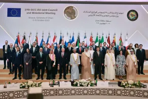 أكد وزراء خارجية دول الخليج العربية والاتحاد الأوروبي، في بيان عقب اجتماع بالعاصمة العمانية مسقط، على الالتزام بالتوصل إلى حل سياسي شامل للأزمة السورية، "بطريقة تحافظ على وحدة سوريا وسيادتها وسلامة أراضيها، وتلبي تطلعات شعبها، وفق قرار مجلس الأمن 2254".