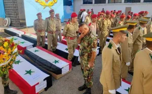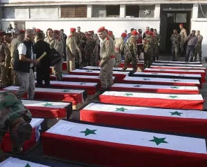 وبث تلفزيون النظام الرسمي خلال الساعات الماضية ومواقع موالية مشاهد من تشييع جثامين دفعات من القتلى ممن لقوا مصرعهم باستهداف حفل تخريج طلاب ضباط الكلية الحربية في مدينة حمص يوم أمس الخميس، وسط إعلان حكومة النظام حالة الحداد في مناطق سيطرته لثلاثة أيام، اعتبارا من اليوم.