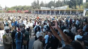 وذكرت المصادر حدوث استنفار أمني كبير تشهده المدينة بالتزامن مع تواجد وزير الدفاع في حكومة نظام الأسد داخل الكلية الحربية، مع تسجيل تحليق مكثف للطيران الحربي والمروحي في سماء مدينة حمص.