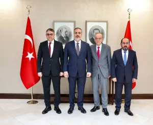 قالت "الدائرة الإعلامية للائتلاف الوطني السوري"، إن وفد برئاسة هادي البحرة رئيس الائتلاف، وكل من رئيس هيئة التفاوض السورية بدر جاموس، ورئيس الحكومة السورية المؤقته عبد الرحمن مصطفى، أجرى زيارة إلى وزارة الخارجية التركية في العاصمة التركية أنقرة، بناء على دعوة رسمية، وكان في استقبالهم وزير الخارجية التركية هاكان فيدان.