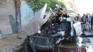ولم يعرف سبب الانفجار مع تضارب الأنباء بين انفجار عبوة ناسفة بسيارة قيادي في مجلس منبج العسكري عند مطعم الدمشقي وسط مدينة منبج، أو أن غارة جوية من طائرة مسيّرة تركية قد استهدفت المكان.
