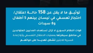 وفي هذا السياق أوردَ نقاطاً من خلفيات الاعتقال/ الاحتجاز التي سجلها في نيسان، وقال إنَّ قوات النظام السوري استمرت في ملاحقة واعتقال الأشخاص الذين أجروا تسويةً لأوضاعهم الأمنية في المناطق التي سبق لها أن وقَّعت اتفاقات تسوية معه، وتركَّزت في محافظتي ريف دمشق ودرعا، وحصل معظمها ضمن أطر حملات دهم واعتقال جماعية وعلى نقاط التفتيش.