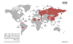 وعرض التقرير خريطة توضح الـ 12 دولة التي صوَّتت بشكل مستمر ضد قرارات مجلس حقوق الإنسان التي تدين الانتهاكات بحق الشعب السوري منذ آذار 2011 حتى نيسان 2023 -وهي: روسيا، الصين، فنزويلا، كوبا، بوليفيا، بوروندي، أرمينيا، إريتريا، الفليبين، الجزائر، العراق، مصر-، وعدد مرات تصويت كلٍ منها؛ ووصف هذه الدول بأنها شمولية بعيدة عن الديمقراطية واحترام حقوق الإنسان، وتناصر بعضها البعض، وهي دول معزولة ومارقة.