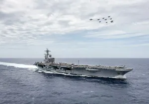 وسبق أن قال مسؤولون بالجيش الأميركي يوم الجمعة، إن واشنطن قررت تمديد مهمة حاملة الطائرات جورج إتش.دبليو بوش ومجموعة السفن المرافقة لها لتوفير خيارات لصانعي السياسات بعد الهجمات التي شنتها الميليشيات الإيرانية على قواعد عسكرية أمريكية بريف ديرالزور، مؤخرا.