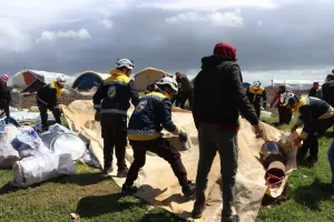 وأكدت "الخوذ البيضاء" أن فرقها استجابت لـ 15 مخيماً تضررت فيها أكثر من 320 خيمة للمهجرين والمنكوبين من الزلزال، وتوزعت بين أضرار كلية باقتلاع الرياح لأكثر من 120 خيمة بشكل كامل، وأضرار جزئية بسقوط دعائم الخيام، وتركزت الأضرار في قرى وبلدات الزرزور والزوف وجسر الشغور وباتنتة وأريحا وأرملا ومعرتمصرين في ريف إدلب، وفي قرى الجينة والتوامة ومدينة دارة عزة في ريف حلب الغربي.