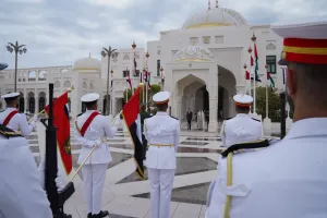 ويرافق الإرهابي "بشار" وفد يضم عددا من الوزراء منهم وزير الاقتصاد والتجارة الخارجية، ووزير شؤون رئاسة الجمهورية، ووزير الإعلام، ومعاون وزير الخارجية، والقائم بأعمال السفارة السورية في أبو ظبي.