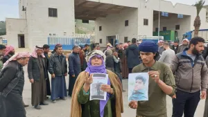 تظاهر العشرات من المدنيين، من أهالي أحد المفقودين على الحدود السورية التركية، أمام معبر باب الهوى الحدودي مع تركيا، مطالبين بالكشف عن مصير ابنهم المفقود، والذي كان أحد الشبان ضمن المجموعة التي تعرضت للتعذيب والضرب على يد الجندرما التركية قبل يومين.
