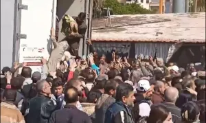 نشرت صفحات إخبارية مقربة من ميليشيات النظام مشاهد تكشف عن حجم تعمد إذلال السوريين من قبل الجهات التابعة للنظام خلال توزيع المساعدات الإنسانية المقدمة للمتضررين من الزلزال، حيث يتم رمي المساعدات على المواطنين بطريقة مذلة، الأمر الذي يبرره النظام بأنه "حالات فردية".