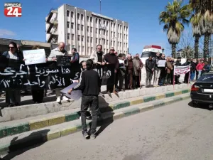 وقال موقع "السويداء 24"، إن العشرات، رجالاً ونساءً، نفذّوا الوقفة في ساحة السير "الكرامة"، وسط مدينة السويداء، حاملين لافتات تطالب بحقوق الشعب المهدورة، وإعادة توزيع الثروة الوطنية، وتدعو للتغيير السياسي، وتطبيق القرارات الأممية ذات الصلة.