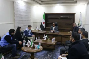 وكان التقى "عبد الرحمن مصطفى" رئيس الحكومة السورية المؤقتة، بوفد الأمم المتحدة برئاسة نائب المنسق الإقليمي للشؤون الإنسانية السيد "ديفيد كاردن"، في مقر الحكومة بكفر جنة شمالي حلب، بعد وصول الوفد عبر معبر "باب السلامة" الحدودي مع تركيا.