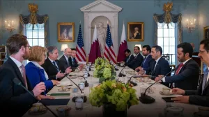 وجرى الاجتماع بين الجانبين في العاصمة الأمريكية واشنطن على هامش زيارة الوزير القطري، وتم خلال الاجتماع "استعراض التعاون الثنائي والعلاقات الاستراتيجية بين البلدين، ومناقشة سبل تنسيق الجهود الدولية لعمليات الإنقاذ والإغاثة وإيصال المساعدات لتركيا وشمال سوريا".