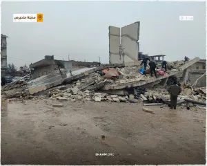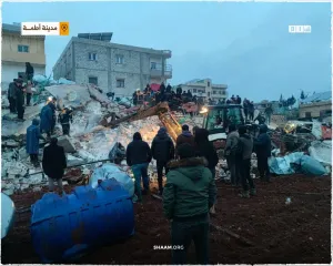 وحتى لحظة كتابة الخبر، لاتزال مئات العائلات لاتزال تحت أنقاض المباني المدمرة في بلدات ومدن (جنديرس وحارم - سلقين - سرمدا - كفرتخاريم - الأتارب ... ومناطق أخرى بريف إدلب وحلب) جراء الزلزال، والمصادر على الأرض تؤكد أن حجم الكارثة يفوق قدرة الإمكانيات المتوفرة في عموم المنطقة.