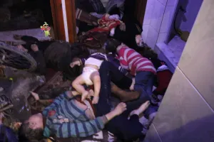 وأوضح التقرير أن مروحية على الأقل تابعة لنظام الأسد أسقطت أسطوانتين تحتويان على غاز الكلور السام على بنائين سكنيين في منطقة مأهولة بالسكان المدنيين في مدينة دوما، ما أدى لمقتل 43 مديناً وإصابة عشرات آخرين.
