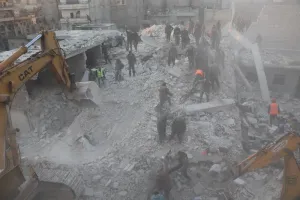 كشفت مصادر محلية اليوم الأحد 22 كانون الثاني/ يناير، عن انهيار مبنى من 5 طوابق فوق رؤوس ساكنيه بحي الشيخ مقصود بمدينة حلب، ما أدى إلى وقوع وفيات وجرحى وعالقون تحت الأنقاض.