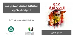 قالت رابطتا الصحفيين السوريين والمحامين السوريين الأحرار، إن النظام السوري لايزال يتصدر قائمة المسؤولين عن الانتهاكات والجرائم التي ارتكبت ضد الصحفيين والمؤسسات الإعلامية في سوريا منذ عام ٢٠١١ وحتى نهاية عام ٢٠٢٢ ليكون الأسد هو عدو الصحافة والأشد فتكاً بالصحفيين في سوريا.