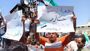 وحمل المتظاهرون لافتات وشعارات مكتوبة نددت بتصريحات وزير الخارجية التركية، ضمن "جمعة لن نصالح"، وشهد اليوم الجمعة إصدار عدة بيانات منها "المجلس الإسلامي السوري"، الذي عبّر عن انزعاجه من توالي التصريحات التي تتحدث عن ضرورة المصالحة مع العصابة المجرمة الحاكمة في سوريا.