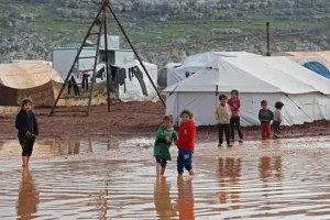 ويوم أمس توفي طفل جراء سقوط جدار الخيمة التي تأويه مع عائلته، في أحد مخيمات شمالي محافظة إدلب، بسبب الهطولات المطرية الكبيرة في المنطقة وتشكيل السيول الجارفة في المخيم، وسط معاناة مريرة لآلاف العائلات مع العاصفة المطرية التي تضرب المنطقة.